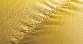 その重要な基本条件を満たすために、当社ではコストをおしまず3cm間に18針の厳しいガイドラインを設定し、シュラフの安定性・耐久性を高めています。さらに太めの丈夫な糸を細い針で縫製することで、縫い目からのダウンの吹き出しを抑え、強度をアップさせています。ダウンシュラフの全ラインナップで共通の縫製基準となります。他の追従を許さない最高の縫製。ぜひ店頭でご注目いただきたいポイントです。
